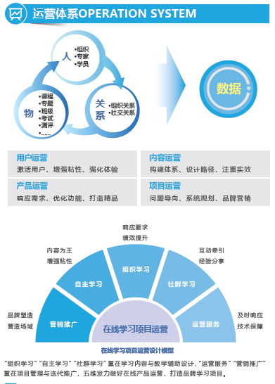 网络公司由远程培训中心整体运营,遵循“互联网+培训”发展思路,提升在线学习平台支撑能力,构建在线学习运营体系,完善在线学习资源体系,建立移动互联网学习模式,打造开放兼容、互联互通、共建共享的“生态级”在线学习平台,满足“全员学习、终身学习”需要,致力于成为企业在线学习的赋能者、开拓者和引领者。