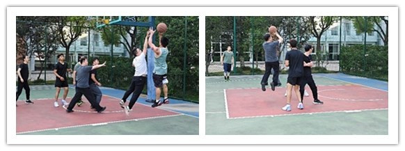 落日余晖,每位参赛者都在赛场上挥洒汗水,享受比赛。场外也有不少老师与员工被这异常激烈的篮球赛所吸引,纷纷驻足观看。