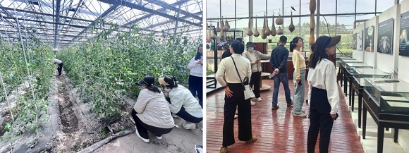 在基地相关老师的带领下,党员们前往种植大棚参观了基地的现代农业科技成果展示,有机、绿色、无公害的番茄、黄瓜、辣椒、紫茄等品种。浦江基地是农业与生物公司重要的农业新技术、新品种、新模式的试验平台,也是新时代员工劳动教育的重要载体场所。现场的党员同志们深受启发,充分肯定绿色低碳农业的发展潜力和价值。