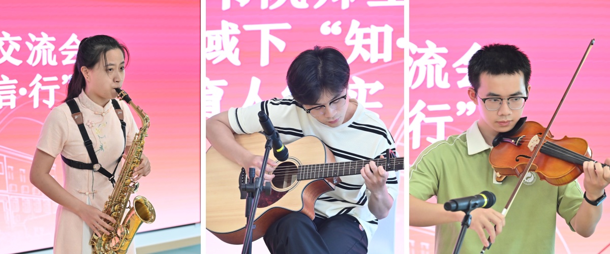 会餐交流期间,同学们在享用美食同时,与师长、优秀同学榜样畅所欲言,学习交流经验。此外,同学们发挥才艺特长,表演了系列文艺节目,书院2025级硕士生任智青用萨克斯演奏《夏天的风》,书院2025级硕士生冯轶带来了精彩的吉他表演歌曲串烧,杨润逸为大家带来了精彩的小提琴演奏《我和我的祖国》,现场氛围达到了高潮。
