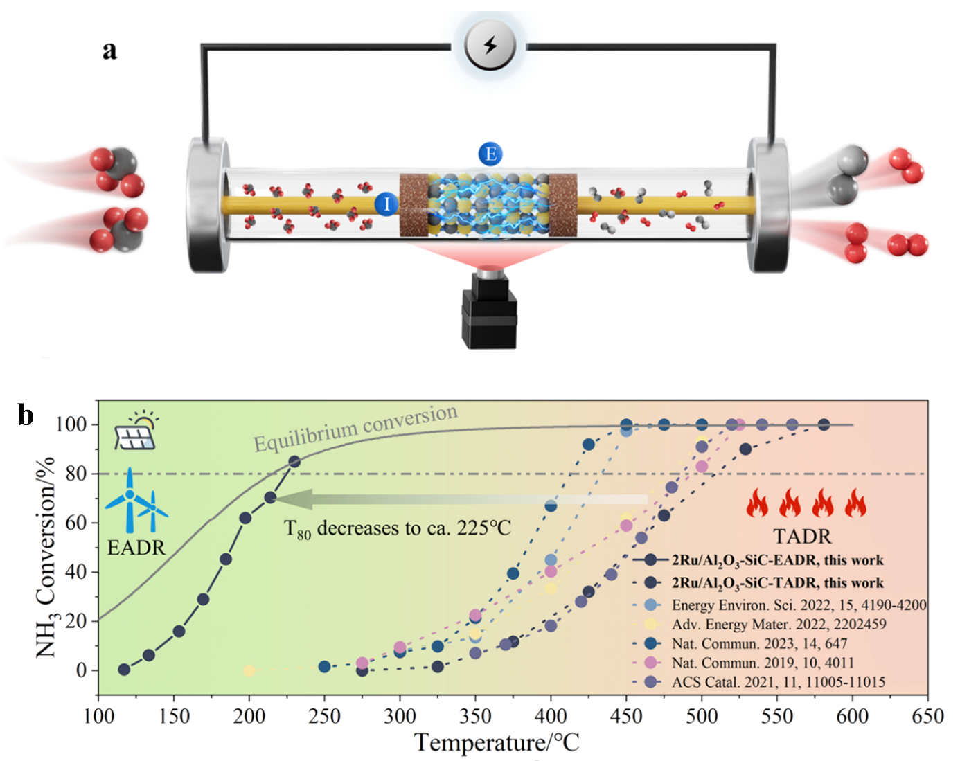 (a)电驱动氨分解制氢策略(b)电驱动氨分解制氢性能