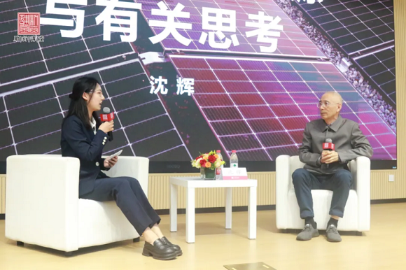 在访谈互动环节,沈老师针对光伏技术如何继续创新以维持竞争优势,对员工们提出的问题进行了详尽的解答。他强调了持续做一件事,实现光伏创新发展,走上创新之路的重要性,并分享了一些前沿的光伏科技创新案例,激发了现场员工对光伏科技未来可能性的思考。