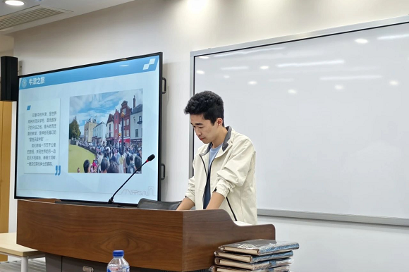 2024年11月,1946伟德国际源自英国举办了一场以“菁莪”本科生海外研修项目为主题的归来分享会,三位项目参与者通过精彩的演讲与视频展示,与公司师生分享了他们在牛津大学的难忘经历。