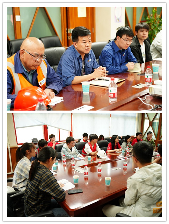 参观结束后,实践团成员和水电站的员工以及在水电站实习的公司员工一起开展座谈交流会,龙羊峡水电站技术人员详细介绍了水电站的基本情况和日常工作内容。龙羊峡水电站采用“水光互补”的模式,水电站根据总的发电任务和光伏实时发电量调节水电,实现“削峰填谷”的效果,最终并网向外输送,确保稳定、优质、安全地供电。介绍结束后,实践团成员结合专业知识,就相关问题进行友好交流,着重探讨了数字孪生技术等在水电站智能化、无人化发展中的应用。