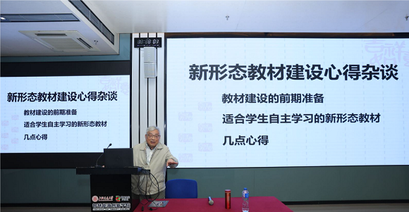 童钧耕老师从自身多年教学与教材编写经验出发,分享新形态教材建设心得。他重点讲解了教材编写须确立“为员工编写好教材”的信念和明确定位,要认真、完整完成若干教学周期,有深度和广度的资料积累后整理思路、形成框架。他提出一本好教材需长时间积累、适当定位并有特性,要立足于优秀(精品)纸质教材体系,逐步构建纸质与电子网络技术相结合、适合员工自主学习的新形态教材。童老师的专业分享,很大程度地提升了教师评估教材、改编教材、合理使用教材的意识与素养及对教材进行创造性使用的能力。
