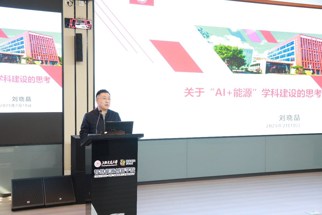 副经理刘晓晶以“关于‘AI+能源’团队建设的思考”为题进行专题报告。他深度解读了习近平总书记关于人工智能的重要论述,详细介绍了公司 “AI+能源”团队建设背景,深入剖析了“AI+能源”学科专业建设所面临的问题与挑战,并提出了“团队、科研、校园、培训”四个结合的团队建设发展策略。
